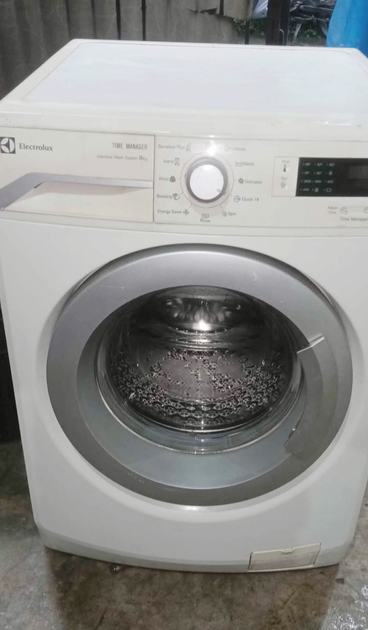 Mesin Cuci Electrolux 8kg front loading, kondisi 90%, cocok untuk usaha laundry kiloan atau pemilik kostan, pengiriman hubungi admin, luar kota selain JABODETABEK BANTEN menggunakan cargo.